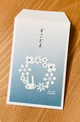 | 北うさぎポチ袋 5枚1セットです。 長方形(W64XH96mm)のぽち袋です。 お札が三つ折りで収まるサイズです。 一般的な厚手の上質紙です。 お年玉だけじゃなく、借りたお金を返す時、メッセージカードの封筒に、 ほんの小さなプレゼントのラッピングに・・・・などなど。 常備しておくと色々使えそうです♪ 330円(税込) 本体価格 300円 |